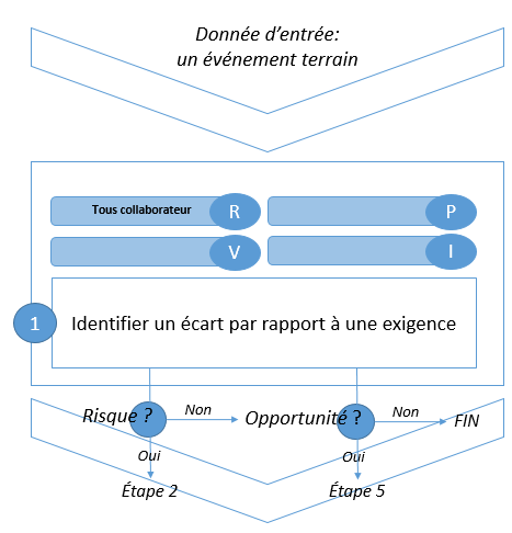 Si cette situation présente un « écart par rapport à une exigence », c’est-à-dire un écart ou non-conformité par rapport aux règles de fonctionnement de l’entreprise (procédures, règlement, etc…), tous collaborateurs se doit d’en faire l’analyse et d’évaluer si cette situation présente un risque important (c’est-à-dire être dommageable si aucune mesure n’est prise à court ou moyen terme) pour l’entreprise ou pour les collaborateurs ou une opportunité, c’est-à-dire une occasion d’apporter une amélioration aux process de fonctionnement ou d’innover.